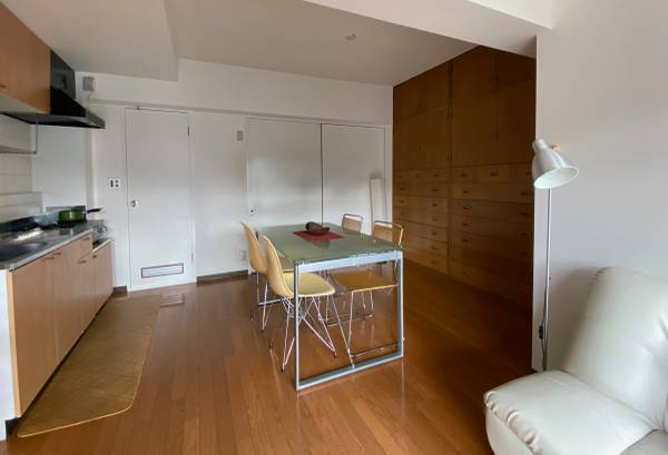 I am an architect, and I renovated and furnished this apartment. The apartment is on the 3rd floor, south-facing, and has wide terrace sliding doors/windows and a balcony that has views of Anyone Temple and Hachimangu Shrine and their woods, Glorious sun-filled space, Hardwood Floors, and white walls. The apartment has Dining, Living room, and a Japanese traditional tatami room.