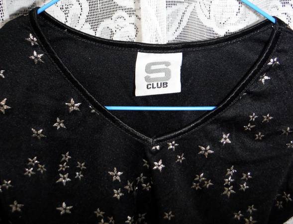 Star Spangled black shirt was used for witches costume ¥600: 7-8 years, Height up to 128cm/51inches, to fit chest 63cm / 25ins, 100% nylon