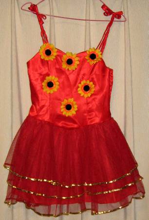 Women's 0-2 (USA), child 135cm -155cm (Japan) red tutu with sunflowers ¥2000, new zipper in the back and in great shape. Sunflowers can be easily removed.