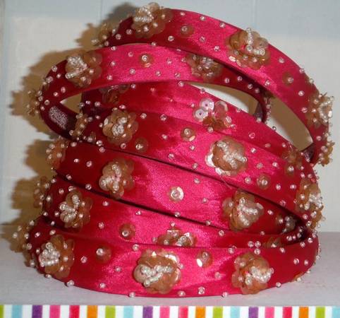 Pink head bands sequins and beads added by hand. Set of seven (great for birthday party) ¥1000 or ¥170 each
