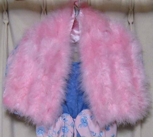 This little princess pink feather (real feathers) stole has a pink satin lining, purchased in USA in a Warner Brothers merchandise store.