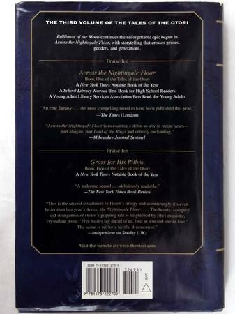 Tales of the Otori is a series of historical fantasy novels by Gillian Rubinstein, writing under the pen name Lian Hearn, set in a fictional world based on feudal Japan. The series initially consisted of a trilogy: Across the Nightingale Floor (2002), Grass for His Pillow (2003), and Brilliance of the Moon (2004). It was followed in 2006 by a sequel, The Harsh Cry of the Heron, and in 2007 by a prequel, Heaven's Net is Wide. In 2020, two new books were published in a sequel series called "Children of the Otori", Orphan Warriors and Sibling Assassins.
