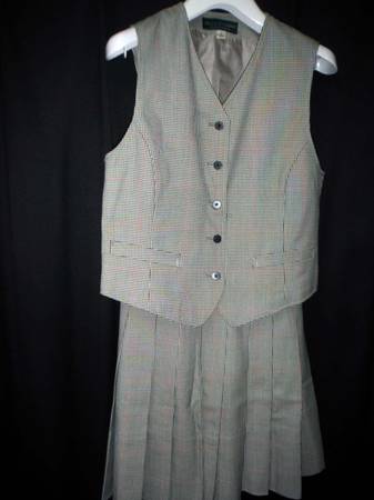 Vest (to go over longs sleeves white blouse, in winter), , 70% polyester and 30% wool.
