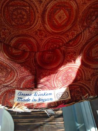 Another amazing and unusual find in the bottomless closets here! Anne DinKen size 22.5 (56cm circumference), Made in Japan how to check size: https://bernardhats.com/all-about-hats/hat-sizes/