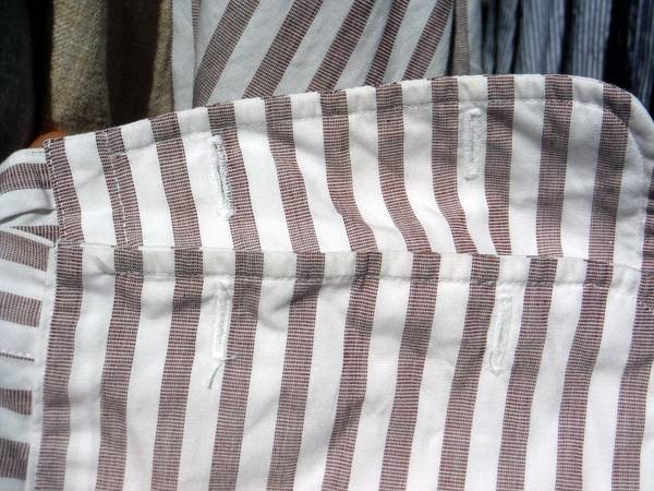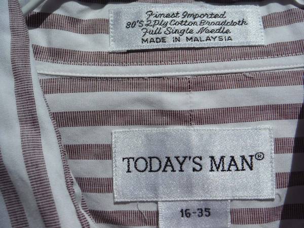 SOLD: Today's Man 100% cotton broadcloth, custom made (tailor comes to your office and measure you and about a month later you get your order delivered) Red and White pin stripe with French cuffs (double cuffs) to be worn with cuff links. ¥1800