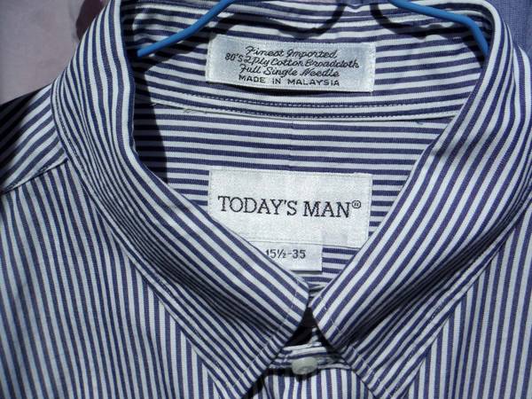 3. Today's Man 100% cotton broadcloth Blue and White broad stripe with cross collar tab (called a tab collar) ¥1500