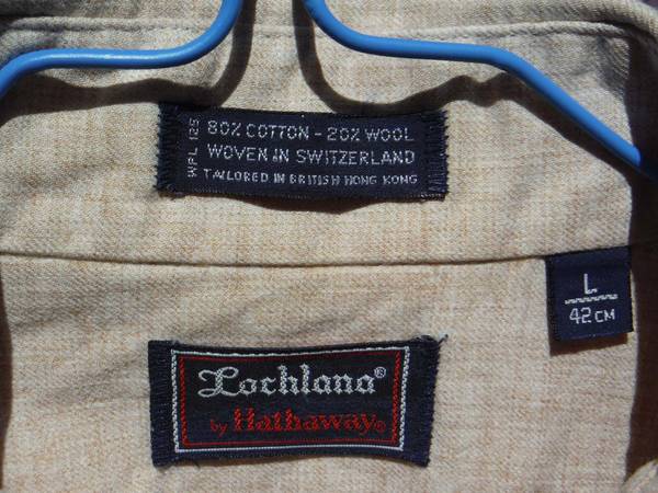 2. Tan (or Beige) Lochlana by Hathaway very comfortable 20%wool 80% cotton shirts ¥1000