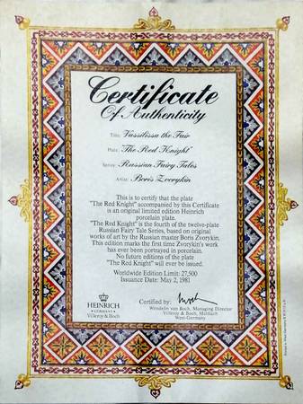 From The Russina Fairy Tales _Vassilissa the Fair_ series illustrated by Boris Zvorykin Bradex-Number 22-H.18-1.4 Germany with Certificate of Authenticity
