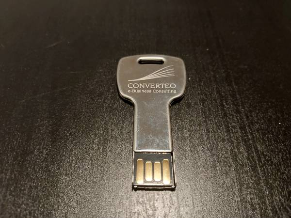 I'm selling this small and elegant key-shaped USB key that has a capacity of 8 Gb. Height: 5.5cm Width (max): 2.5 cm Thickness: 0.1 cm