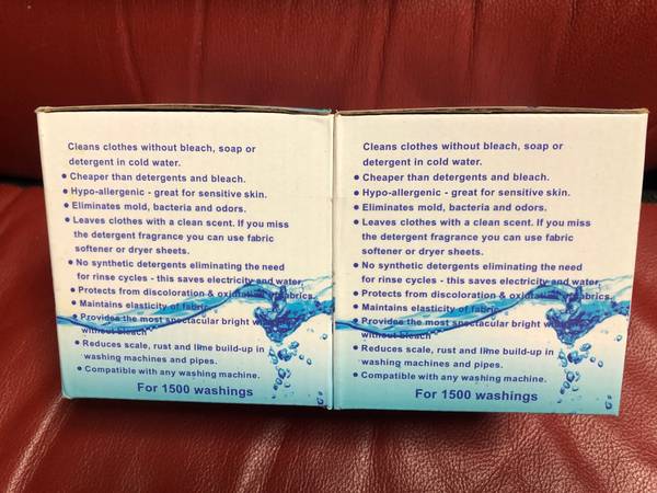 Cleans clothes without bleach, soap or detergent, in cold water. Hypoallergenic, leaves clothes with a clean scent. Compatible with any washing machine.