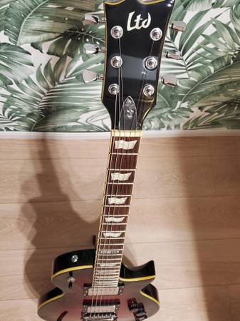 The LTD EC-256 takes many of the coolest aspects of our higher-end EC Series models, and offers them to you in a super-affordable guitar that's ready to rock. A classic shape that's excellent for all musical styles and genres, the EC-256 looks amazing with multiple binding on the body and headstock like you expect from high-quality guitars. Playing the EC-256 is also a dream come true, with set-neck construction for fast and easy access to the highest frets. The EC-256 also features a mahogany body, a comfortable and fast three-piece thin U-shaped mahogany neck, and a rosewood fingerboard with flag inlays and 22 extra-jumbo frets. This guitar features our acclaimed ESP Designed LH-150 humbucking pickups that offer great tone for all genres of music, and the tone flexibility of coil-splitting controlled by a push-pull switch on the tone knob.