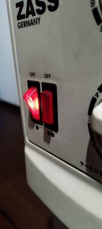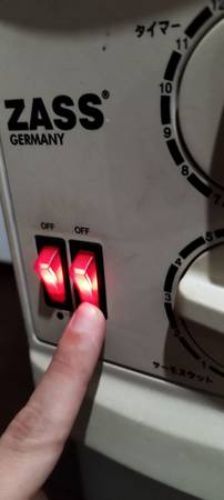 The white electric heater has one broken switch, but the other switch still works, so it operates at half power. If someone who knows how to repair it can fix the broken switch, I think that it might work fully again.